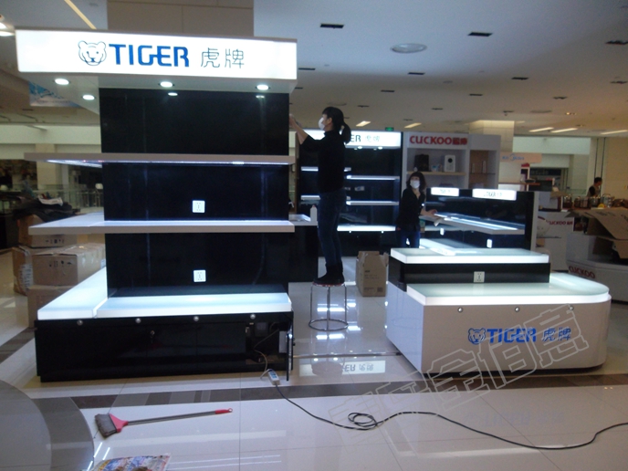 還好,我們做的這個小家電展柜一次性通過廠家和商場的驗收。